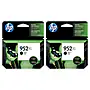 HP 952XL Black High Yield Ink Cartridges, 2/Pack (F6U19AN-VB)