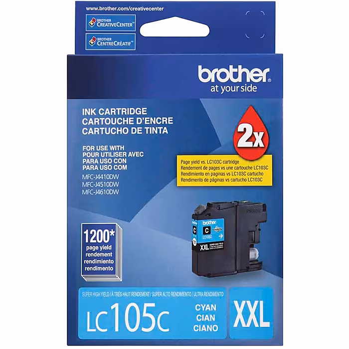 - Brother Genuine LC105C Super-High Yield Cyan Ink Cartridge.