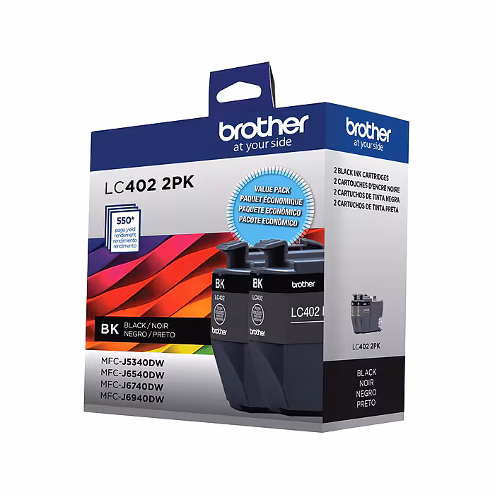 Trust the Brother LC402 genuine ink for superior inkjet print quality and performance you can consistently rely on for up to 550 pages per cartridge. The genuine ink is intelligently engineered to work seamlessly with your Brother color inkjet printer to deliver results and reliable performance. The genuine ink produces sharp prints and vivid colors that withstand the test of time.