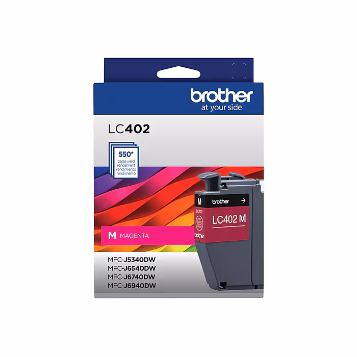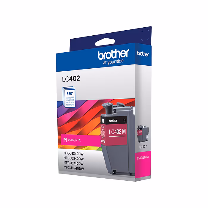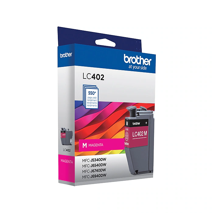 Brother genuine ink is intelligently engineered to work seamlessly with your Brother color inkjet printer to deliver results and reliable performance. This Brother genuine LC402 magenta ink cartridge provides sharp, clear printing and superior inkjet print quality you can consistently rely on for up to 550 pages.