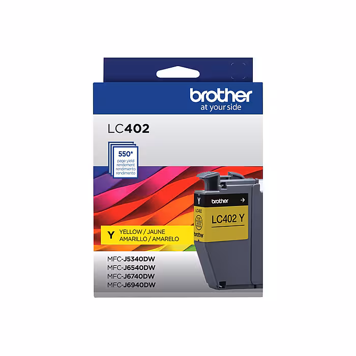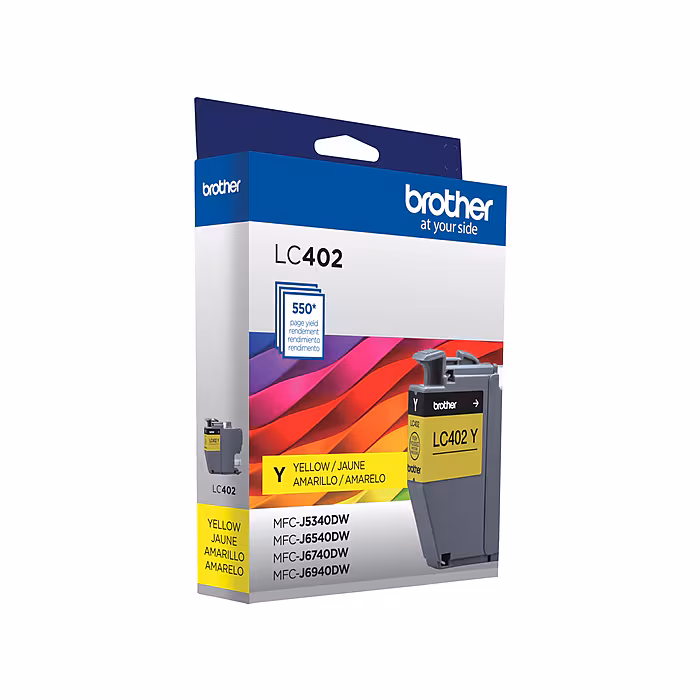 Brother genuine ink is intelligently engineered to work seamlessly with your Brother color inkjet printer to deliver results and reliable performance. This Brother genuine LC402 yellow ink cartridge provides sharp, clear printing and superior inkjet print quality you can consistently rely on for up to 550 pages.