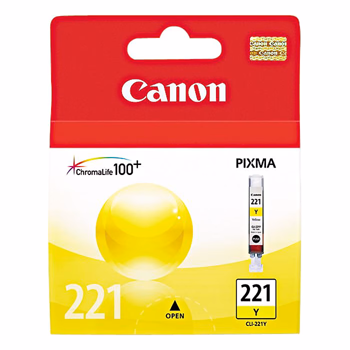 Get vibrant prints that last a long time by using this yellow ink tank. The ink dries quickly to prevent it from smudging, smearing and bleeding through papers for clean results every time. This Canon CLI-221 yellow ink tank is easy to install into select Canon photo printers, all-in-one machines and inkjet printers, and the yellow ink ensures text and images stand out sharply.