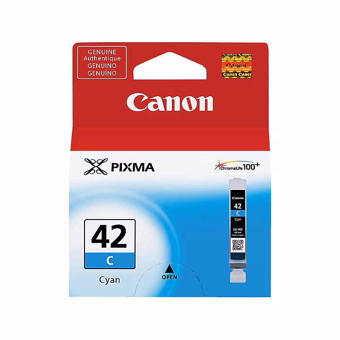 Print crisp, colorful images for photos or other materials with this Canon CLI-42 cyan ink tank.