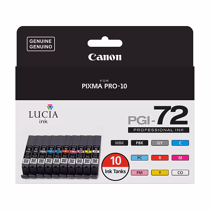 Canon PGI-72 Black/Color Assortment Standard Yield Ink Cartridges, 10/Pack (6402B007)