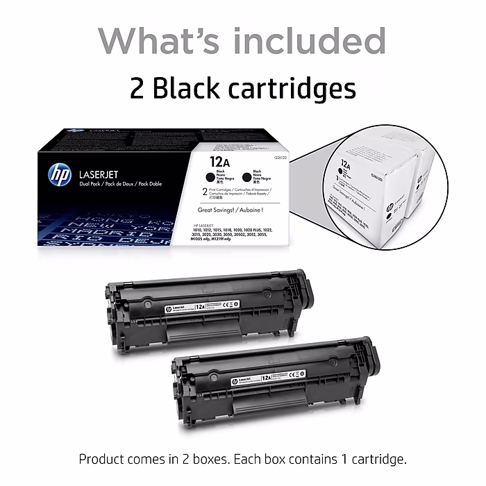 Keep prints clean and sharp with this 2-pack of HP 12A black toner cartridges.