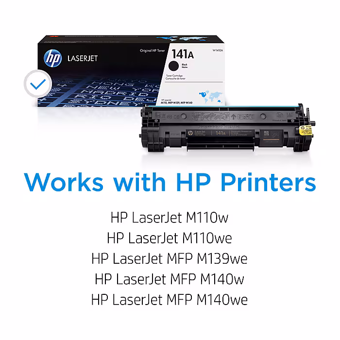 This HP original HP 141A Black, standard yield LaserJet toner cartridge provides impressive reliability, standout quality, and affordability for home and office printing.