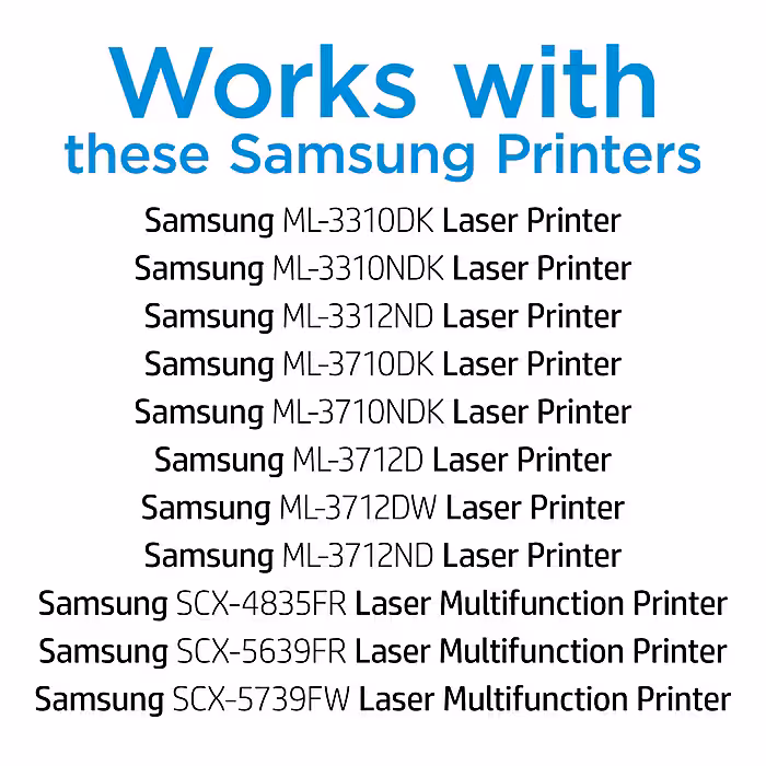 - Compatible with: Samsung ML-3300, ML-3310, ML-3312, ML-3710, ML-3712, SCX-4833, SCX-4835, SCX-5637, SCX-5639, SCX-5737, SCX-5739