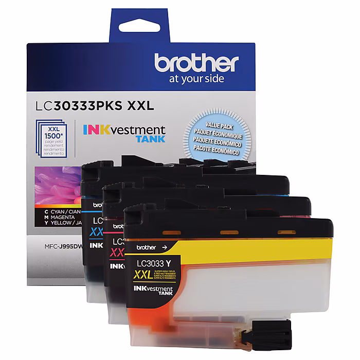 Brother LC3033 Cyan/Magenta/Yellow Super High Yield Ink Tank Cartridge, 3/Pack