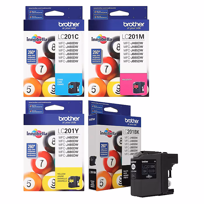 Brother LC201 Black, Cyan, Magenta, Yellow, Standard Yield Ink, 4/Pack