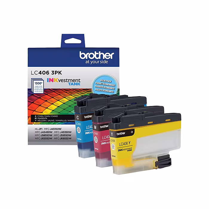 Brother LC4063PKS Cyan/Magenta/Yellow Standard Yield Ink Cartridges, 3/Pack