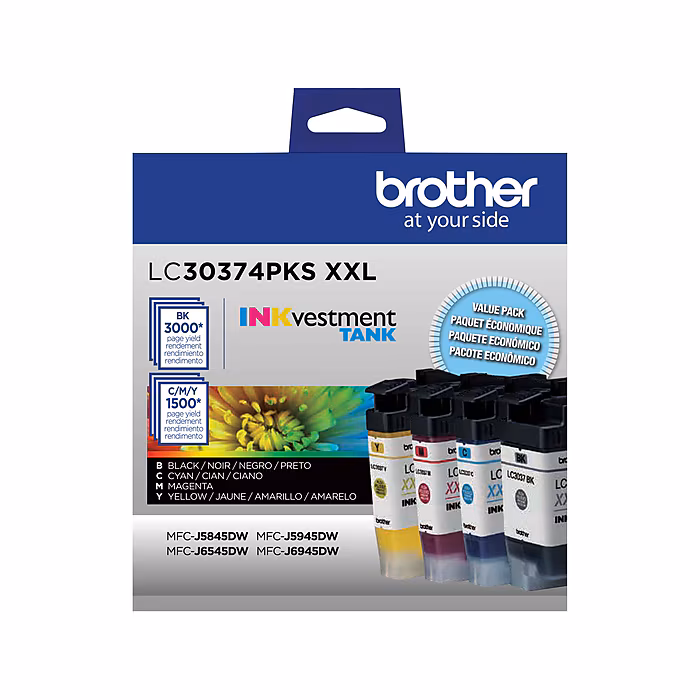 Brother LC30374PKS XXL Black/Cyan/Magenta/Yellow Super High Yield Ink Cartridges, 4/Pack