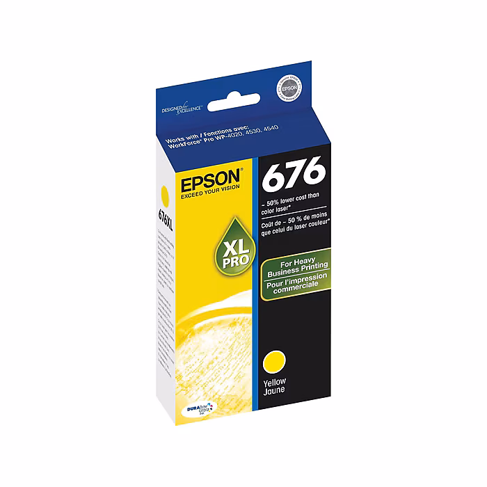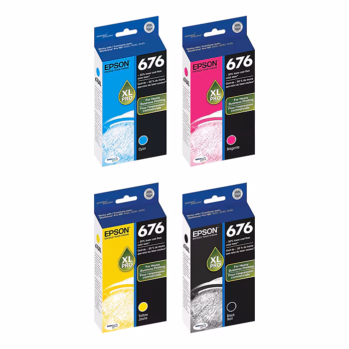 Epson T676XL Black, Cyan, Magenta, Yellow High Yield Ink Cartirdges, 4/Pack (T676BCMYXL-VB)