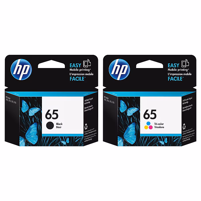 HP 65 Black/Tri-Color Standard Yield Ink Cartridge, 2/Pack (T0A36AN-VB)