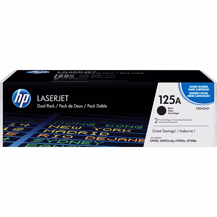 HP 125A Black Standard Yield Toner Cartridge, 2/Pack (CB540AD)