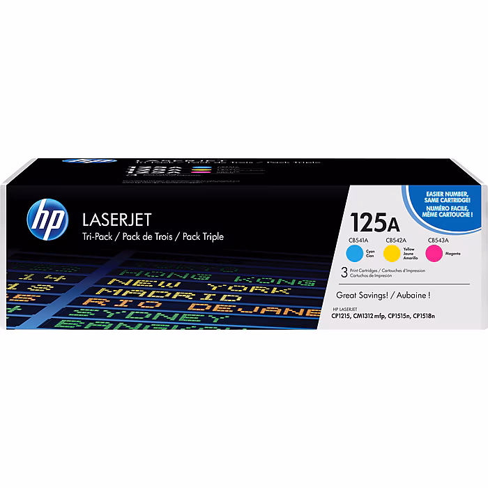 HP 125A Cyan/Magenta/Yellow Standard Yield Toner Cartridge, 3/Pack (CE259A)