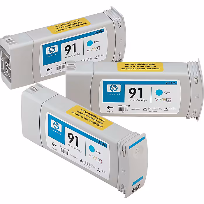 HP 91 Cyan Standard Yield Ink Cartridge, 3/Pack (C9483A)