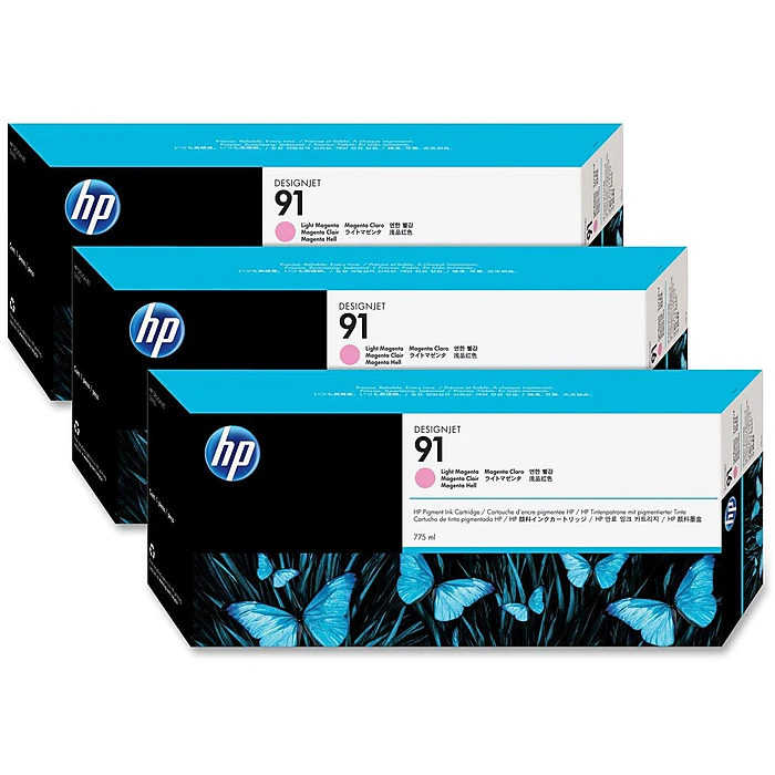 HP 91 Light Magenta Standard Yield Ink Cartridge, 3/Pack (C9487A)