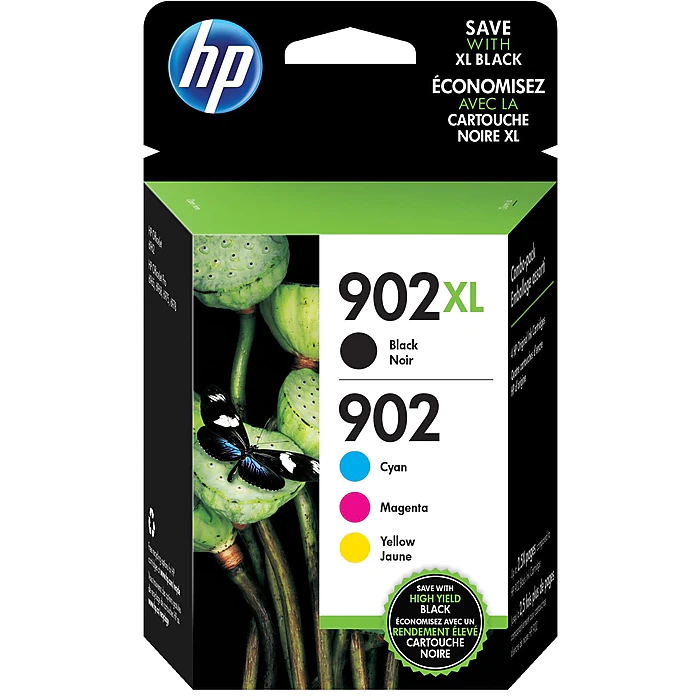 HP 902XL Black/Cyan/Magenta/Yellow Ink Cartridges, High Yield Ink Cartridges, 4/Pack (6ZA01AN-VB)