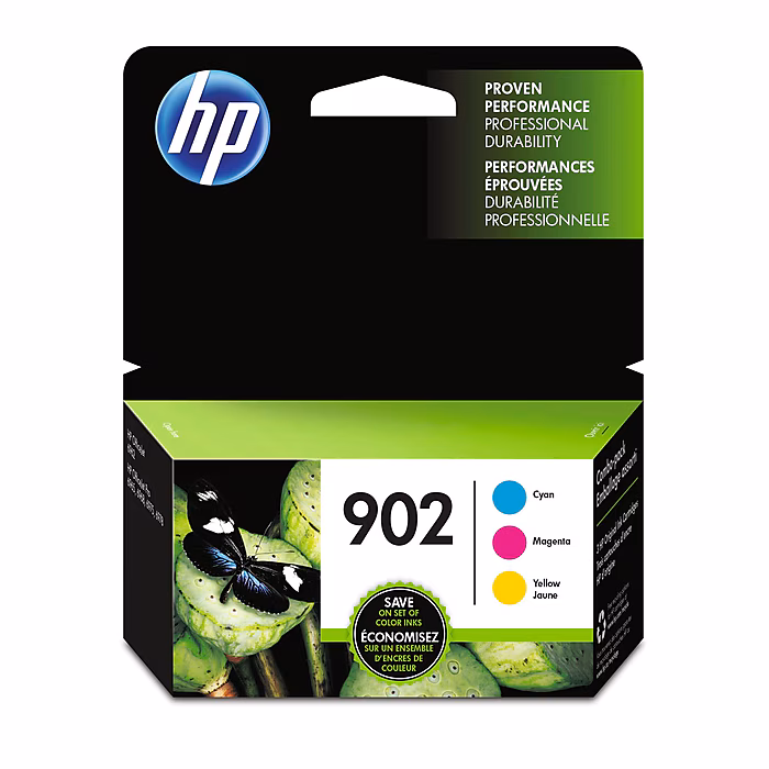 HP 902 Cyan/Magenta/Yellow Standard Yield Ink Cartridge, 3/Pack (T0A38AN#140)