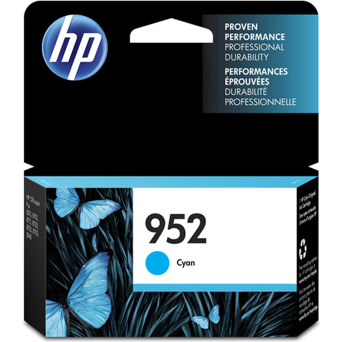 HP 952 Cyan Standard Yield Ink Cartridge, Print Up to 630 Pages (L0S49AN#140)