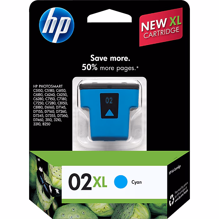 HP 02XL Cyan High Yield Ink Cartridge (C8730WN#140)