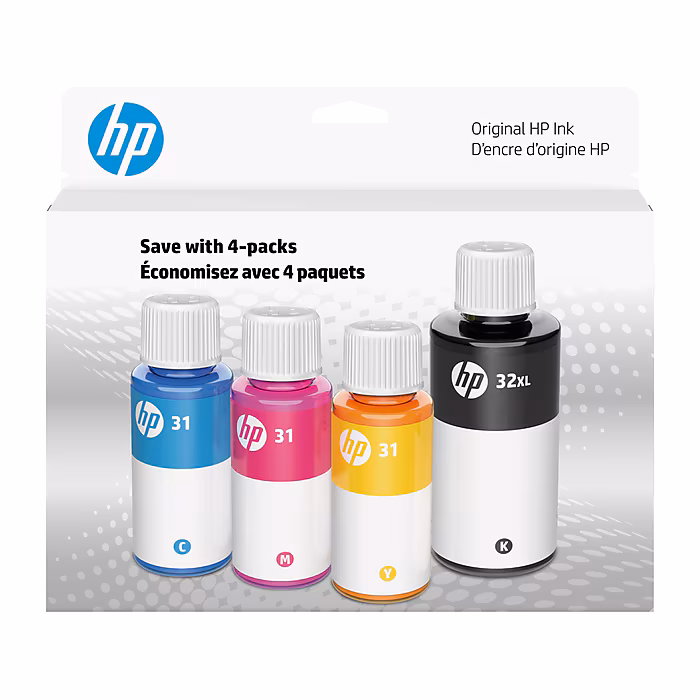 HP 32XL/31 Black/Cyan/Yellow/Magenta High Yield Ink Refills, 4/Pack (7E6X7AN)